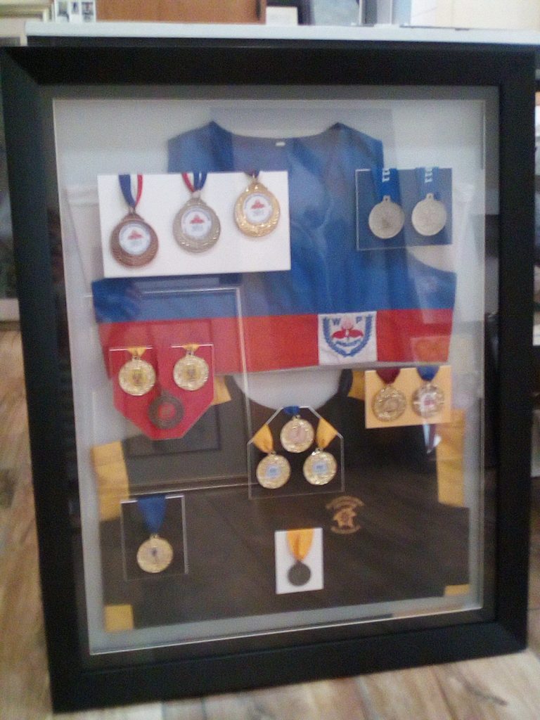 You think it, we frame it. Sport memorabilia, Baby shoes, Christening Dresses, Tapestries, Sashes of Beauty Queens, Pans, Glasses, etc.